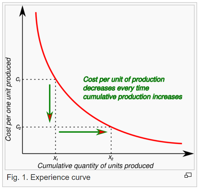 - Chức năng “Economy of Scale”: Khi quy trình được mài dũa và tối ưu chuẩn mực, muốn nâng cao số lượng để nhanh chóng chiếm thị phần thì doanh nghiệp cần phải “scale” – mở rộng sản xuất. Với kinh nghiệm có được từ 2 chức năng trên, chi phí chi trả cho việc mở rộng thêm 1 đơn vị năng lực (máy móc, dây chuyền tự động, phân xưởng, nhân sự, etc..) sẽ thấp dần đi.