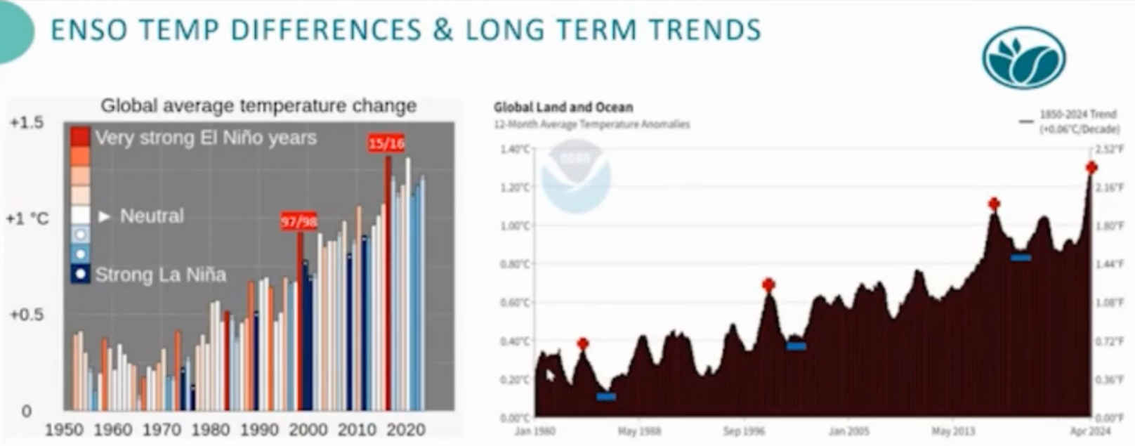 Understanding the intricate relationship between climatic events and coffee prices is crucial for coffee derivatives traders. The Sucafina’s report sheds light on how ENSO (El Niño-Southern Oscillation) phases influence global temperature trends, which, in turn, affect coffee production and market prices. Let’s dive deeper into the correlation between these climatic events and coffee prices, providing a comprehensive analysis for traders.